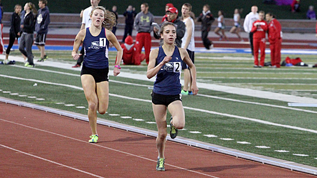 Kaleigh Kroeker may have provided the most stunning moment of the entire evening when she bolted past teammate Heather Bates on the finish straight of the 1600 meters. Photo by Alan Versaw.