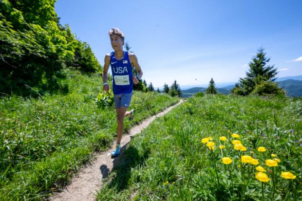 representing Team USA. (Pictured Below: Blair racing at the U18 Mountain Running Cup, Picture Credit: Marco Gilbert).