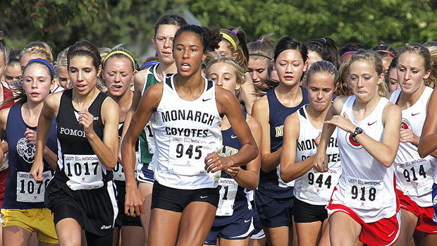 Nobody looks tired at two steps in, but Claire Green would have more left than anyone else over the last 3K. Photo by Jeff McCoy.