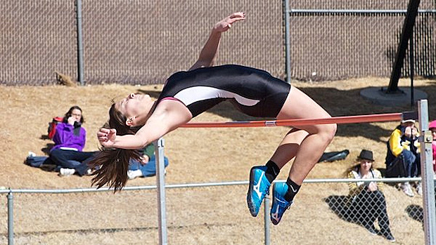 Pueblo South's Angelique Urenda takes it over the bar at 5-3. Photo by Paul Jaeger.