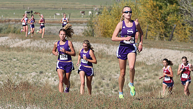 Midway through their home invitational yesterday, Salida's Phoebe Powell, Sydney Fesenmeyer, and Lauren McDonald were tightly bunched at 2-3-4. Photo by Alan Versaw.
