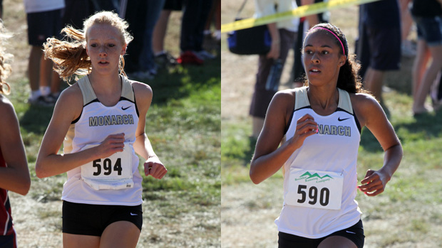 Elissa Mann and Claire Green are two of Monarch's seven girls who've run below 19:00 at some point during this season. Photos by Alan Versaw.