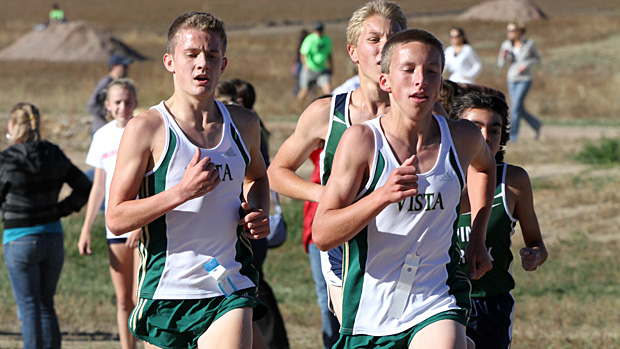 You rarely see the Mountain Vista guys running alone, and certainly not on Thursday. Photo by Alan Vesaw.
