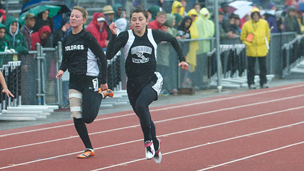 Not only did Kathryn New win a cold and wet state 100 last spring, she also brings back a 58.08 mark in the 400. Photo by Paul Jaeger.